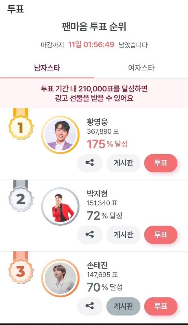 2. 팬마음 앱 다운로드하고 투표하는 방법 투표기한